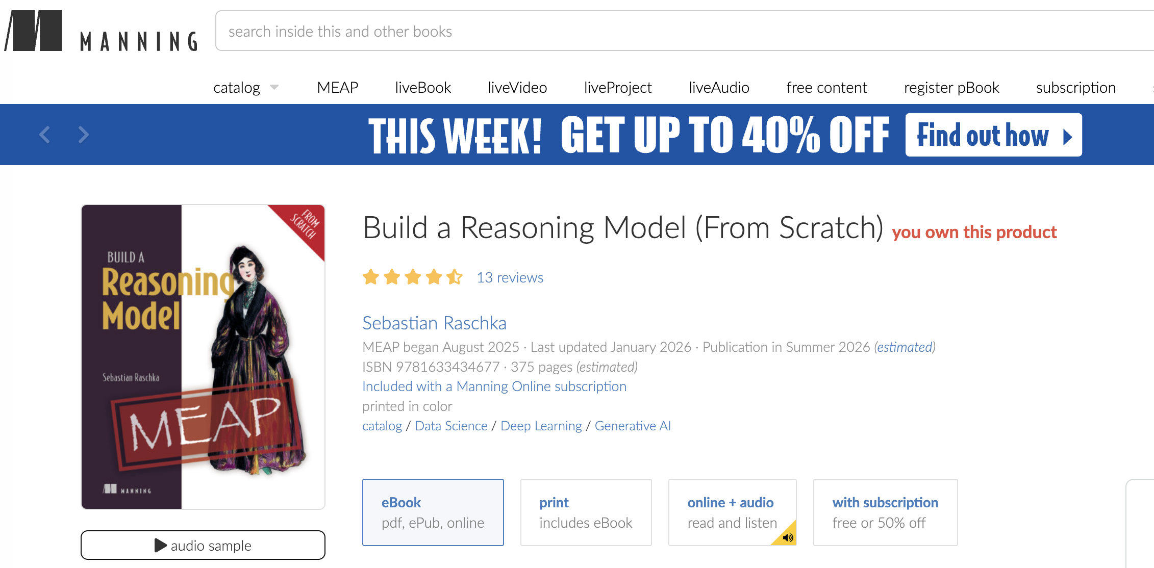 Build a Reasoning Model (From Scratch) . If you want to deepen your understanding of LLM internals and architecture, these books are excellent resources.