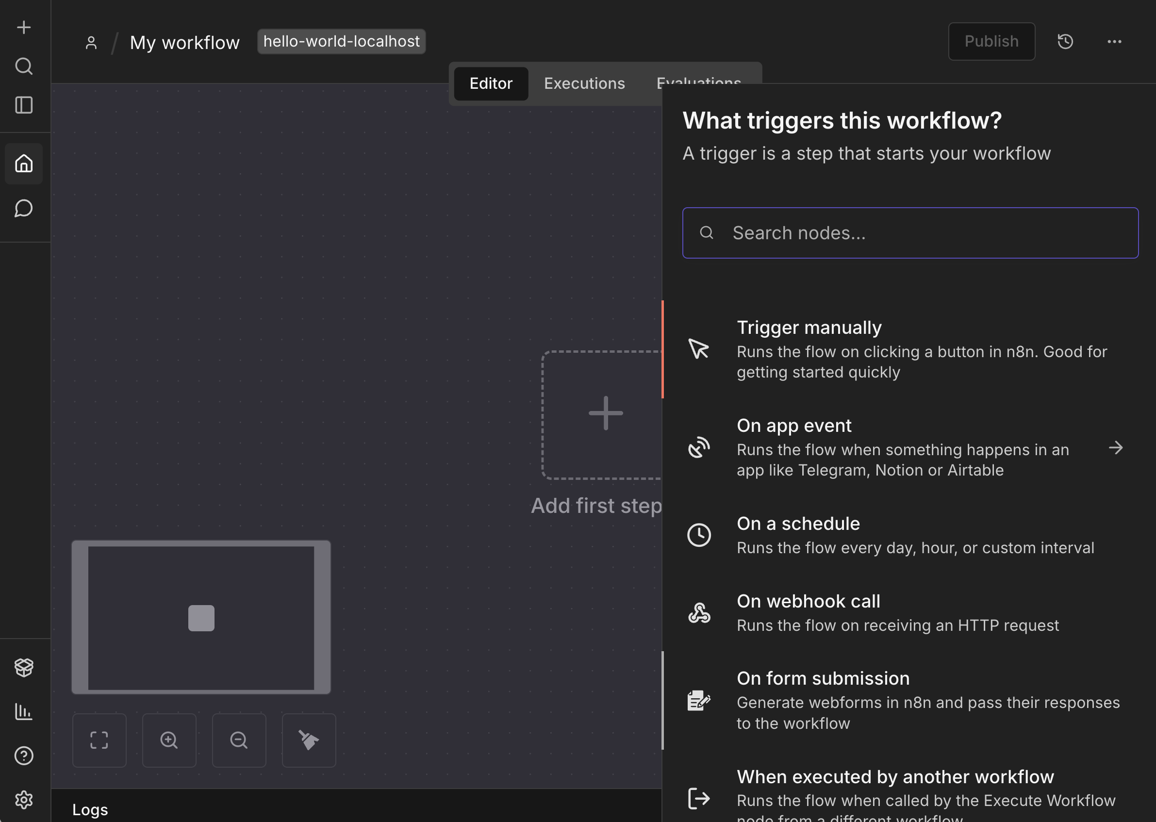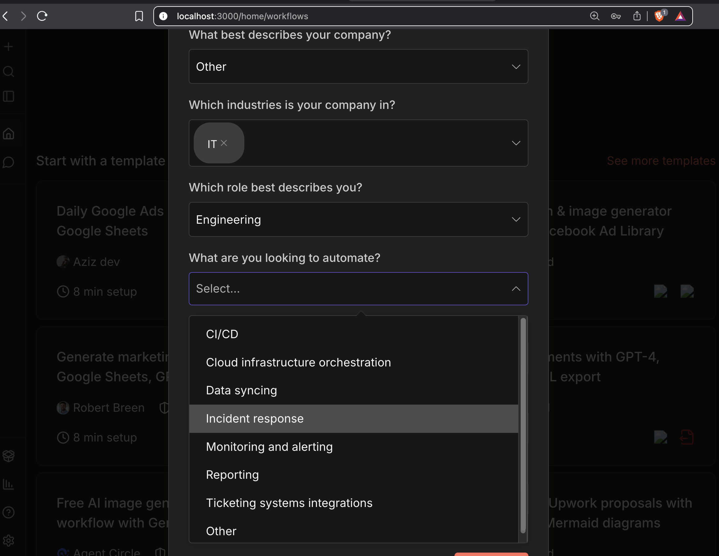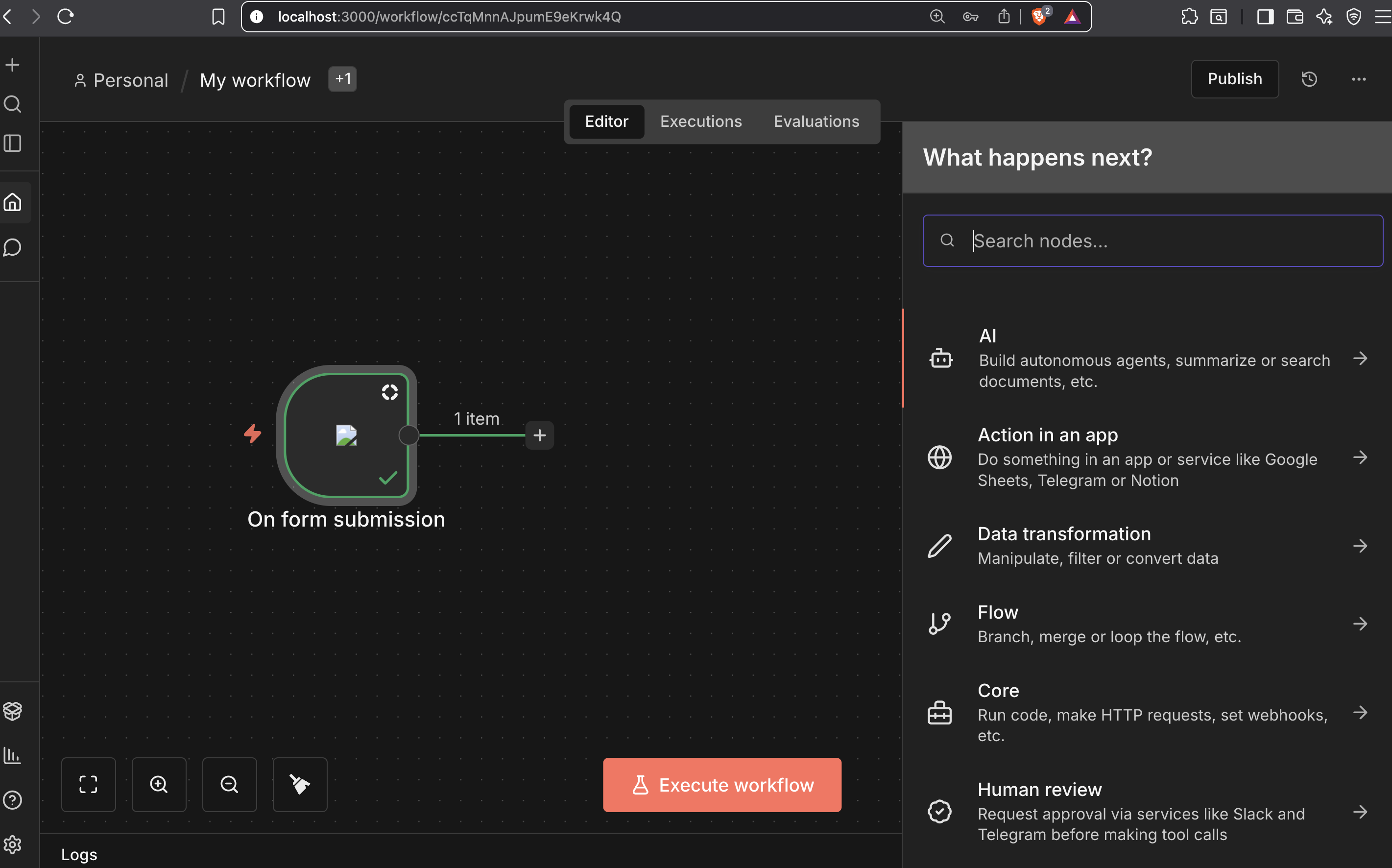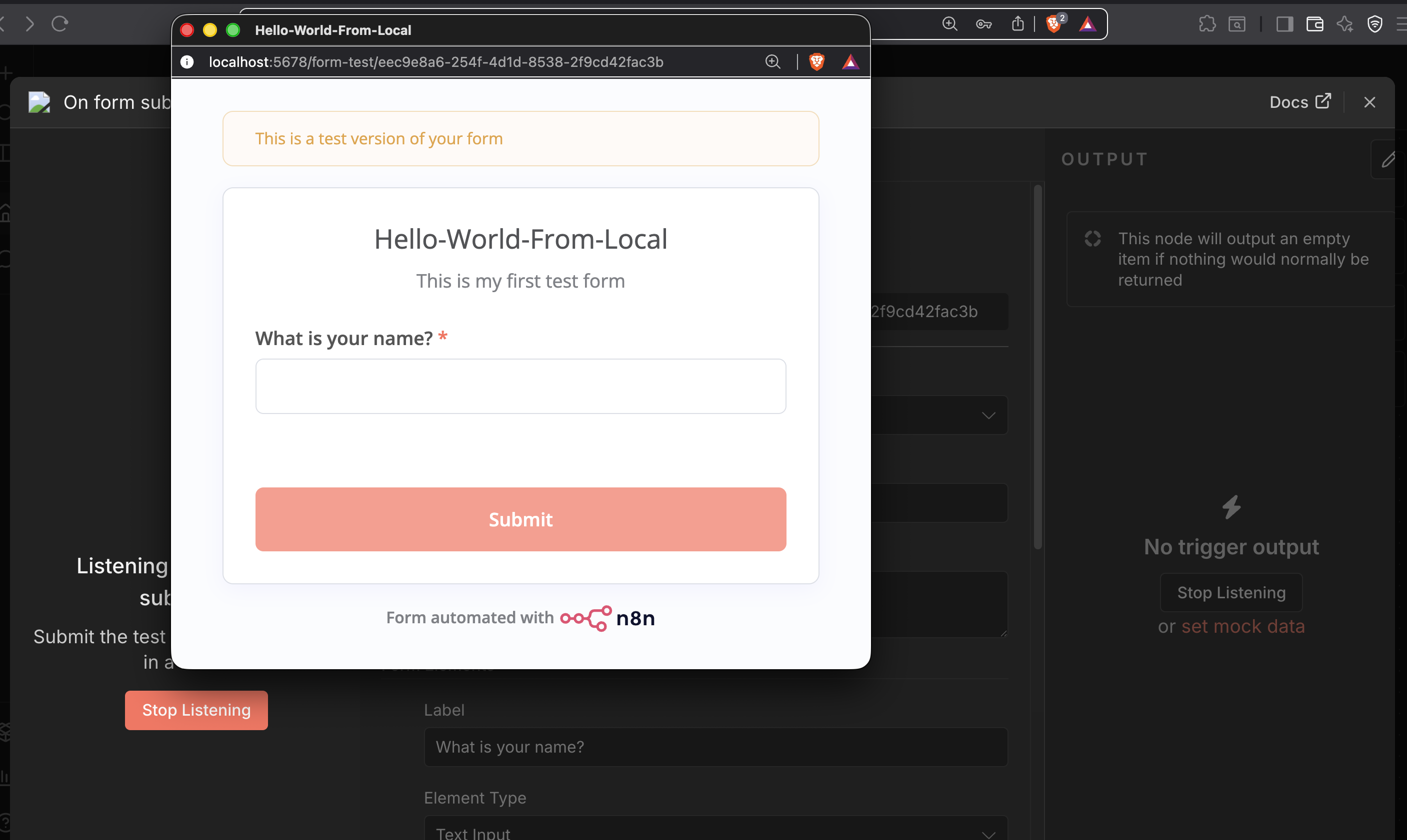The success of the refactor is visible in the final UI. By navigating to localhost:3000 (the BFF port) instead of the default 5678, we successfully rendered the n8n setup screen and the workflow editor.