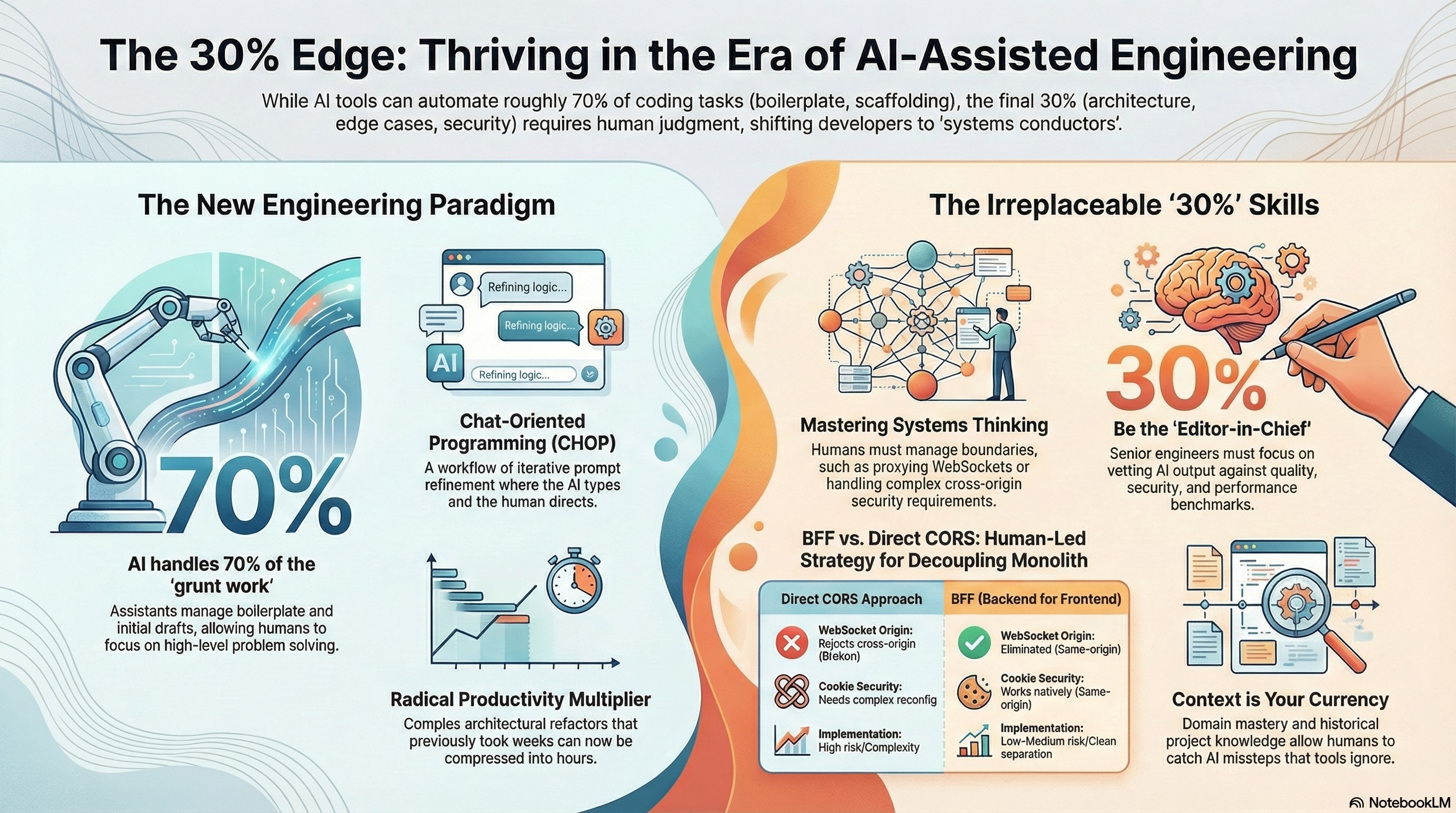 AI handles the “70%” of grunt work—boilerplate proxy setup, type definitions, and package configuration. This allows the architect to focus on the “30%” that matters: edge cases, security, and system boundaries. What was estimated as a multi-week roadmap was compressed into a single afternoon of high-intensity direction.